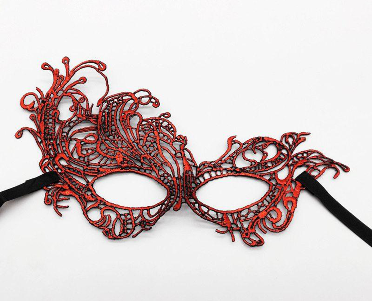 Kırmızı Renk Dantel Örgü İşlemeli Parti Maskesi Model 1